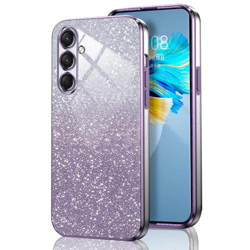 Google Glitter Coque pour Samsung Galaxy A16 5G Étui, Antichoc Housse Cadre Galvanisé TPU Paillettes/TransparentRésistant Aux Rayures Étui, Violet