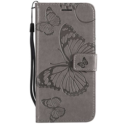 DENDICO Coque pour Galaxy A6 2018, Papillon Imprimé PU en Cuir Coque Magnétique Portefeuille TPU Étui Housse pour Samsung Galaxy A6 2018 - Gris
