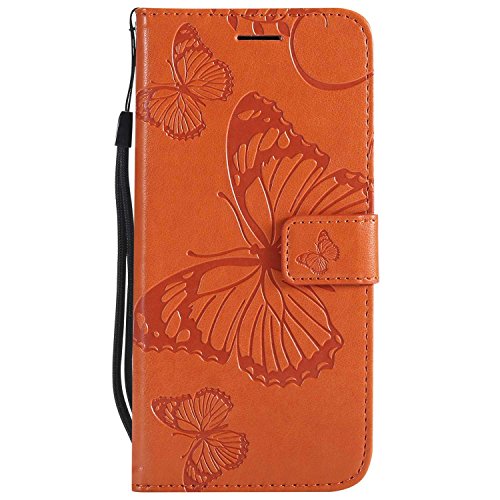 DENDICO Coque pour Galaxy A6 2018, Papillon Imprimé PU en Cuir Coque Magnétique Portefeuille TPU Étui Housse pour Samsung Galaxy A6 2018 - Orange