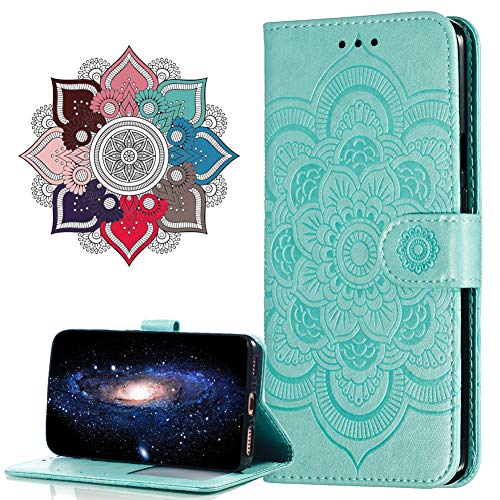 MRSTER Cuir Premium Coque pour Samsung Galaxy A6, [Stand Support] [Porte-Cartes de Crédit] [Fermeture Magnétique] Portefeuille Étui Housse pour Samsung Galaxy A6 2018. LD Mandala Green