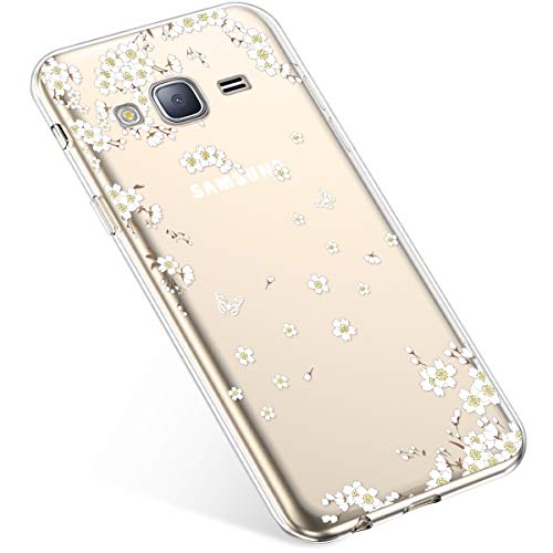 Uposao Coque pour Galaxy J3 2016,Etui Galaxy J3 2016 Coque Silicone Transparente Motif Cute Animal élégante Fleur Housse Etui Souple TPU Gel Antichoc Coque pour Galaxy J3 2016,Fleur Blanc