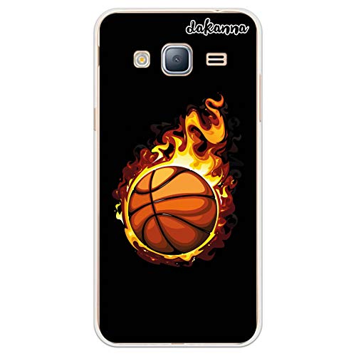 dakanna Coque pour Samsung Galaxy J3 - J3 2016 en Silicone | Ballon de Basket Flamme | Étui Housse en TPU Souple - Transparent