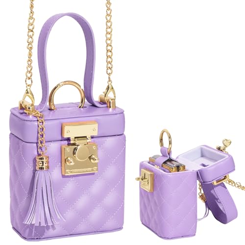 COQUE Galaxy Z Flip 3/Flip 4/Flip 5/Flip 6 étui de téléphone avec Mini Sac à chaîne plaqué Or et Fente pour Carte de Sangle de bandoulière de téléphone pliée-Violet