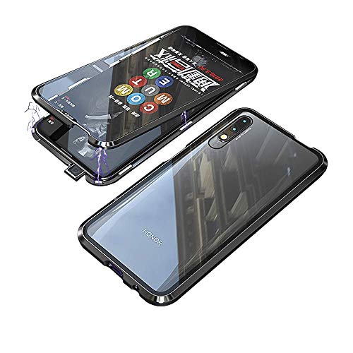 Hkess Coque pour Huawei Honor 9X Cover Magnétique Adsorption Technologie 360 Degrés Protection Etui Transparent Verre Trempé Plein écran Avant et Après Housse Bumper Métal Frame Etui Flip Case,Noir