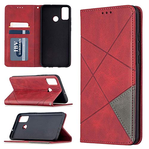 SATURCASE Coque pour Huawei Honor 9X Lite, Rhombe PU Cuir Flip Aimant intégré Portefeuille Support Porte-carte Protecteur Housse Étui pour Huawei Honor 9X Lite (LX-Rouge)