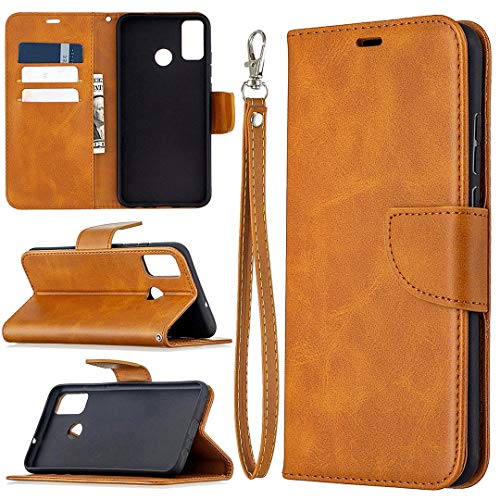 HualuBro Coque pour Honor 9X Lite, Housse à Rabat en Premium PU Cuir Flip Cover Case Antichoc Portefeuille Etui pour Huawei Honor 9X Lite Coque, Marron
