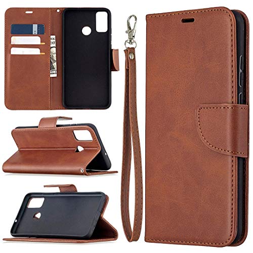 SATURCASE Coque pour Huawei Honor 9X Lite, Luxe PU Cuir Magnétique Flip Portefeuille Support Porte-Carte Dragonne Protecteur Housse Étui pour Huawei Honor 9X Lite (YZ-Marron)