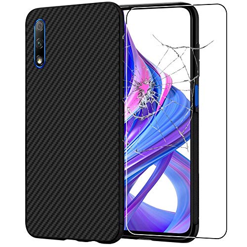 ebestStar - Coque pour Honor 9X, 9X Pro, Etui Protection Motif Carbone, Antichoc Souple TPU, Noir + Verre Trempé