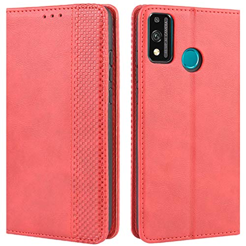 HualuBro Coque pour Honor 9X Lite, Housse à Rabat en Retro PU Cuir Flip Cover Case Antichoc Magnétique Portefeuille Etui pour Huawei Honor 9X Lite Coque (Rouge)