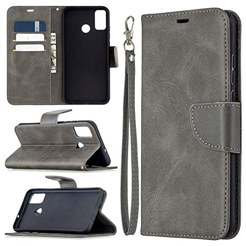 SATURCASE Coque pour Huawei Honor 9X Lite, Luxe PU Cuir Magnétique Flip Portefeuille Support Porte-Carte Dragonne Protecteur Housse Étui pour Huawei Honor 9X Lite (YZ-Gris)