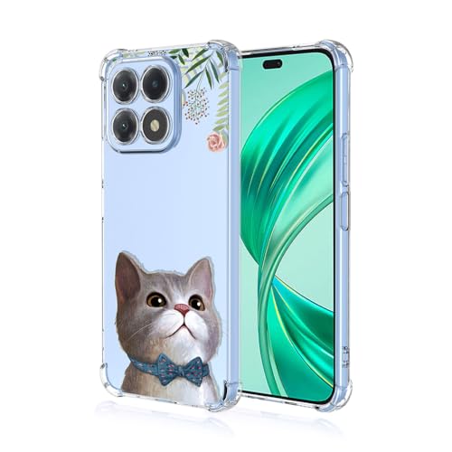 SEAHAI Coque pour Honor X6b, Ultra Mince Élégant en Silicone Souple Fleurs Colorés Housse Brillante Antichoc, Transparent TPU Gel Étui - Chat