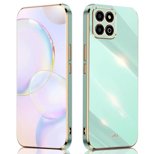 ILING Coque pour Honor X6b, Simple Couleur Unie Dos Galvanisé Bordure Dorée Design Souple TPU Antichoc Protection Ultra Mince Housse Femme Étui (Vert)