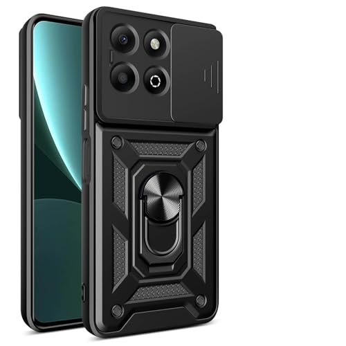 ILING Coque pour Honor X6b, Texture Métal Mate Antichoc Dos Rigide PC Housse, Doux Silicone TPU Bumper Étui avec Support pour Bague et Caméra Couvercle (Noir)