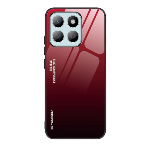 SEAHAI Coque pour Honor X6b, Ultra Mince Silicone TPU Souple Bumper Étui Arrière Mode Dégradé de Couleur en Verre Trempé Housse Antichoc Case, Rouge élégant