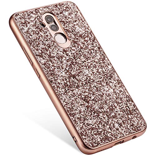 Uposao Glitter Coque pour Huawei Mate 20 Lite,Paillettes Strass Brillante Bling Glitter de Luxe,IMD Design Coque PC Rigide Back Cover + Cadre de Souple Silicone TPU Antichoc Robuste Coque,Or Rose