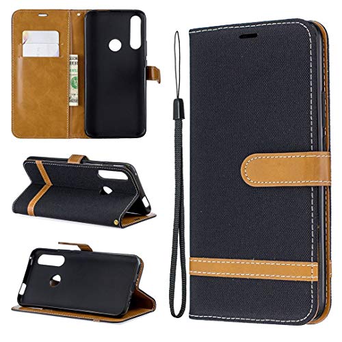 SATURCASE Coque pour Huawei P Smart Z, Premium Jeans PU Cuir Magnétique Flip Portefeuille Support Porte-Carte Dragonne Protecteur Housse Étui pour Huawei P Smart Z (Je-Noir)