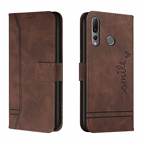 LEMAXELERS Coque Huawei P Smart Z,Portefeuille Etui Housse pour Huawei P Smart Z Coque Paillette Sourire rétro PU Cuir Flip Wallet Coquille Couverture pour Huawei P Smart Z,HX Smile Brown