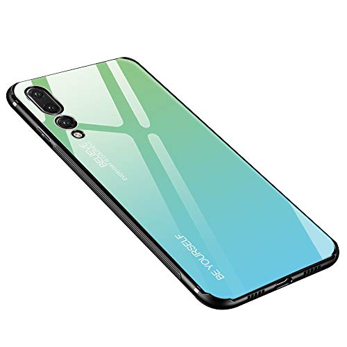 generisch Coque pour Huawei P20 Pro, Verre Trempé Arrière en Dégradé + Bords Couvrants Silicone TPU Souple Hybride Étui Antichoc Anti Rayures Case pour Huawei P20 Pro (Vert-Bleu)