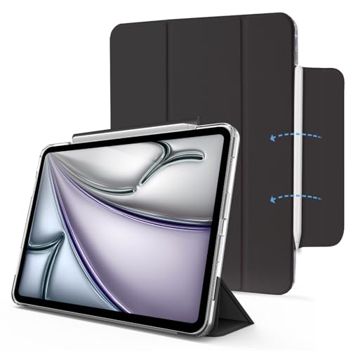 MYGROO Étui pour iPad Air6e 11" 2025/2024, iPad Air 5e génération 2022, Air 4e génération, étui Intelligent à Trois Volets avec Coque Transparente, Fin et léger, Noir Noble