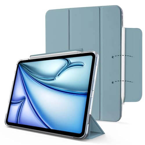 MYGROO Étui pour iPad Air6th 11" 2024/2025 M3/2, iPad Air 5e génération 2022, Air4e génération, étui Intelligent à Trois Volets avec Coque Transparente, Fin et léger, Bleu Brumeux