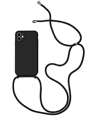 Emlivi Coque pour iPhone 11 avec Cordon, Etui de iPhone 11 Silicone Houss de Collier Réglable Longueur Chaîne Shock-Absorption Souple TPU Bumper Coque pour iPhone 11 Case - Noir