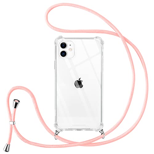 Pnakqil Collier Cordon Coque pour iPhone 11 avec Cordon, Réglable Lanyard Housse Transparente Silicone Anti-Chute Etui pour iPhone 11 6.1 Pouces, Ètuis à Bandoulière, Rose