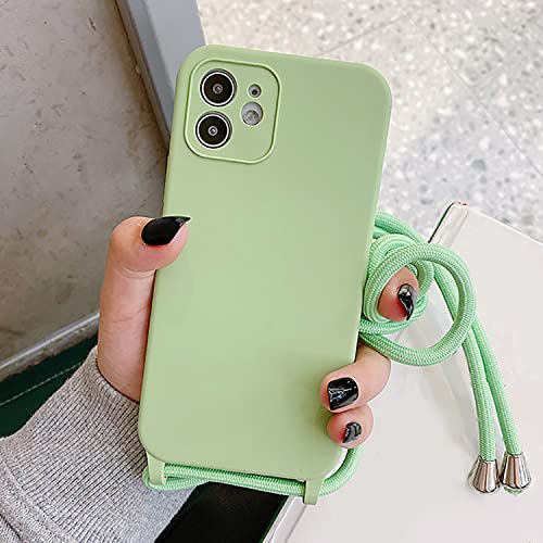 Alihtte Coque pour iPhone 11 avec Cordon de Collier, Coque pour iPhone 11 Souple Silicone TPU Bumper Etui Housse avec Cordon Réglable Lanyard Case pour iPhone 11 Mince Collier Cover-Vert Matcha