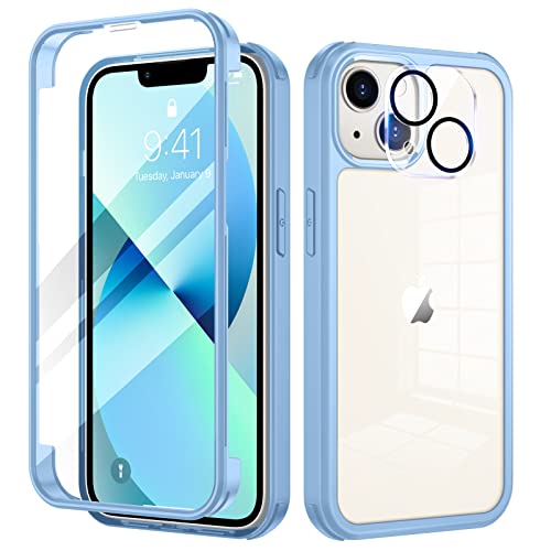 seacosmo Coque pour iPhone 13 Mini, Antichoc Housse avec Verre Trempé Protection écran +[9H Dureté Caméra Arrière Protecteur] Full Body Protection Integrale Bumper Rubuste Etui - Bleu Clair