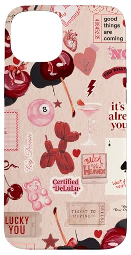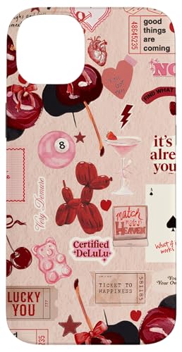 Cherry Disco Ball 8 Leopard Star Rouge à lèvres Collage Bordeaux Coque pour iPhone 14 Plus
