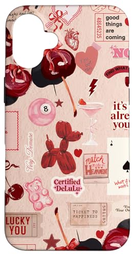 Cherry Disco Ball 8 Leopard Star Rouge à lèvres Collage Bordeaux Coque pour iPhone 16 Plus