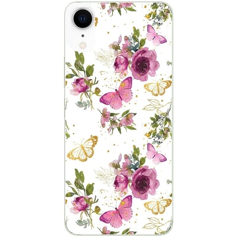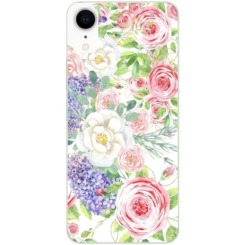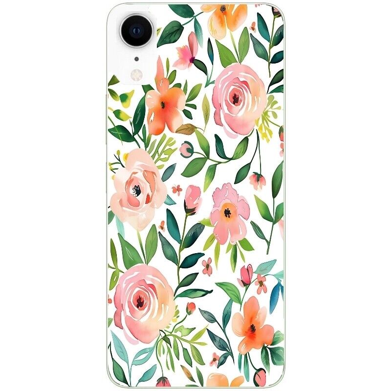 Compatible Coque iPhone XR,Motif Fleur Rose Feuilles Grises Romance Mince TPU Antichoc Anti-Rayures Protection Étui Housse pour Téléphone iPhone XR,05 Fleurs Grises