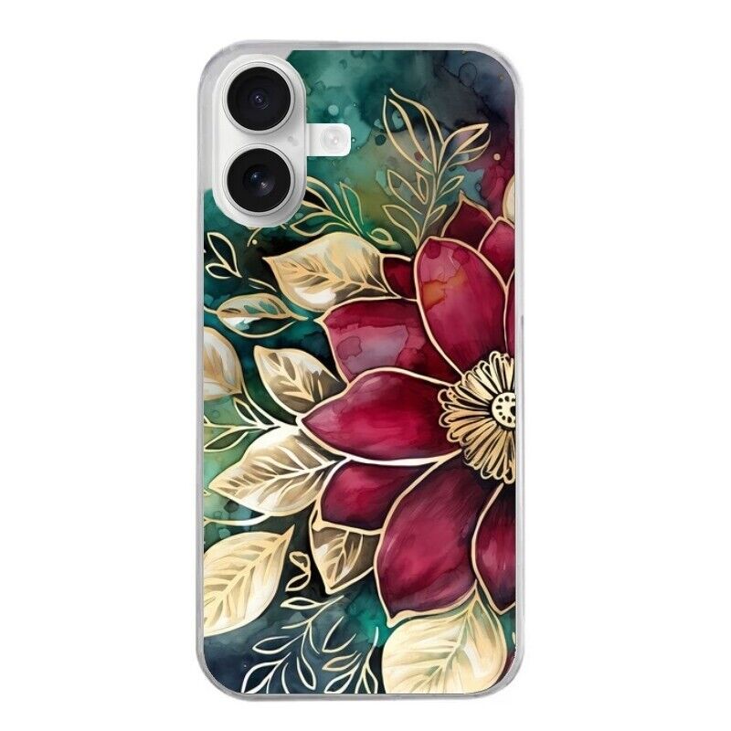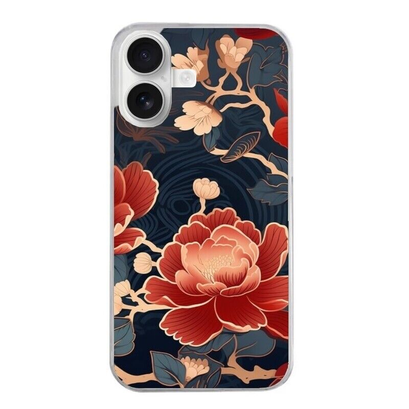 Coque pour Iphone 15 Fleur rouge rose vintage
