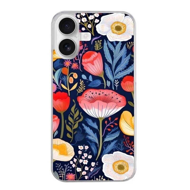 RALEAVO Coque pour iPhone 16, [Compatible avec Magsafe] Magnétique Protection Antichoc Coque avec Motif Floral, Silicone Clair Anti-Jaune Coque pour iPhone 16-Fleur