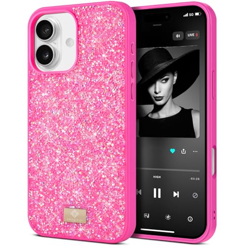 BEZ Coque pour iPhone 16 Paillette, Coque Compatible avec iPhone 16 Glitter, Coque Series de Etuis avec Bling & Co., Étui en Diamant Etincelant et à Cristal Bling, Brink Pink