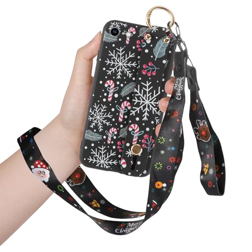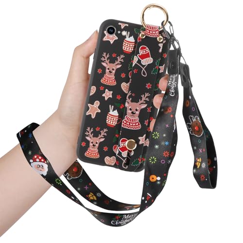 Xylota Noël Coque pour iPhone 7/8 SE 2020/SE 2022 avec Cordon Bracelet, Aesthetic Sapin de Noël Motif pour Femmes Housse, Silicone Étui Antichoc Christmas Case avec Lanyard pour iPhone SE 4,7", Noir