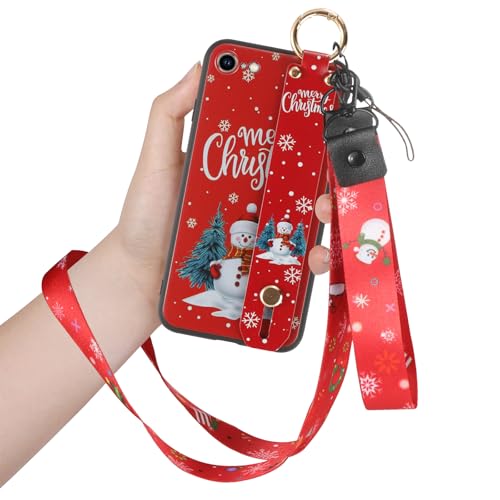 Xylota Noël Coque pour iPhone 7/8 SE 2020/SE 2022 avec Cordon Bracelet, Aesthetic Père Noël Bonhomme Motif pour Femmes Housse, Rouge Silicone Étui Antichoc Christmas Case avec Lanyard 4,7", Snowman