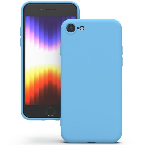 YATWIN Coque pour iPhone SE 2022/2020, Housse en Silicone Doux avec Découpes Précises pour Caméra, Design Ultra Mince, Protection 360° à Bords Surélevés - Bleu Ciel