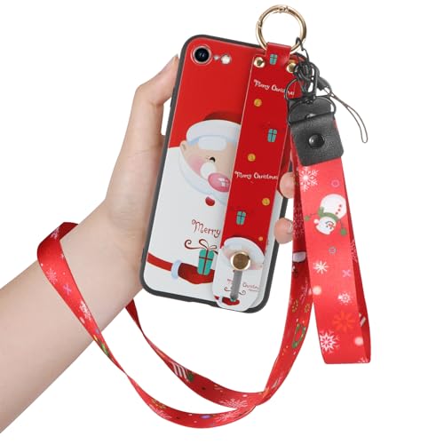 Xylota Noël Coque pour iPhone 7/8 / SE 2020 / SE 2022 avec Cordon Bracelet, Aesthetic Père Noël Motif pour Femmes Housse, Rouge Silicone Étui Antichoc Christmas Case avec Lanyard pour iPhone SE 4,7"