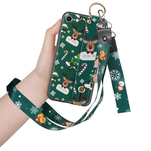 Xylota Noël Coque pour iPhone 7/8 SE 2020/SE 2022 avec Cordon Bracelet, Aesthetic Sapin de Noël Cerf pour Femmes Housse, Silicone Étui Antichoc Christmas Case avec Lanyard pour iPhone SE 4,7", Vert