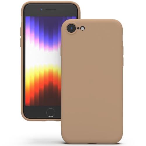 YATWIN Coque pour iPhone SE 2022/2020, Housse en Silicone Doux avec Découpes Précises pour Caméra, Design Ultra Mince, Protection 360° à Bords Surélevés - Cappuccino