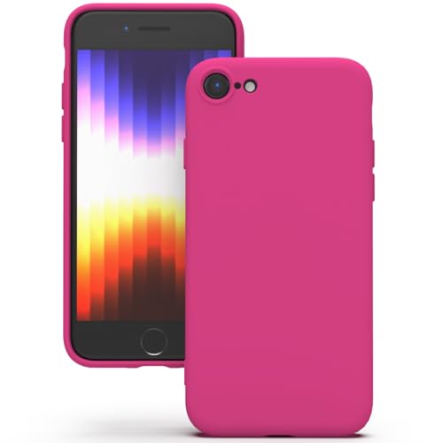 YATWIN Coque pour iPhone SE 2022/2020, Housse en Silicone Doux avec Découpes Précises pour Caméra, Design Ultra Mince, Protection 360° à Bords Surélevés - Magenta