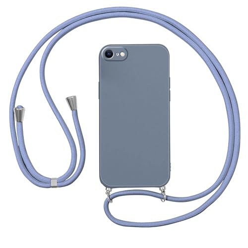Vauki Coque pour iPhone 8/iPhone SE 2020/iPhone 7/SE 2022 avec Cordon de Collier, Souple Silicone Antichoc Téléphone Etui avec Bandouliere, Tour de Cou Lanière - Housse avec Réglable Chaine,Bleu