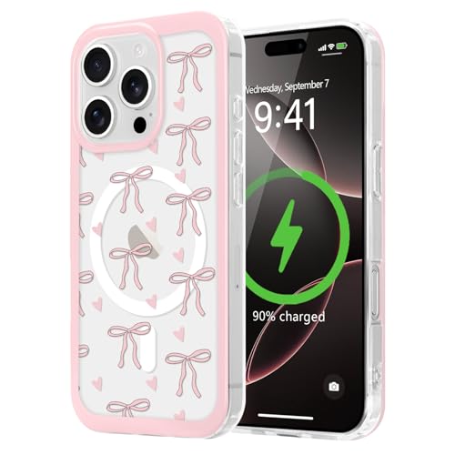 LCHULLE Coque Compatible avec iPhone 16 Pro Transparent Housse de Protection avec Motif Antichoc TPU Silicone Femme Fille Case pour iPhone 16 Pro Cœur Solide