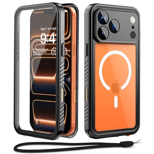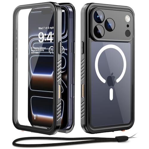 Beeasy Coque Magnétique Étanche pour iPhone 17 Pro - Compatible MagSafe, Protection IP68 Waterproof 360 Intégrale Antichoc, Coque Blindée Antichoc avec Film de Protection Écran, 6.3” Noir