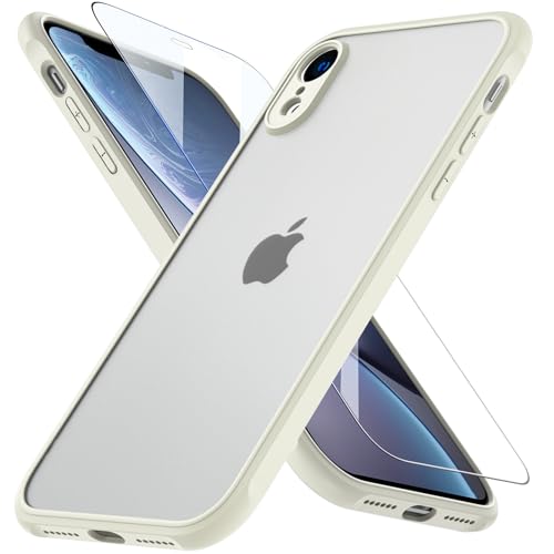 Fin2feel Coque pour iPhone XR, Coque iPhone XR Antichoc avec Verre Trempé Anti-Rayures, Étui de Protection pour iPhone XR Protection Militaire Souple TPU Bumper Housse pour iPhone XR - Blanc