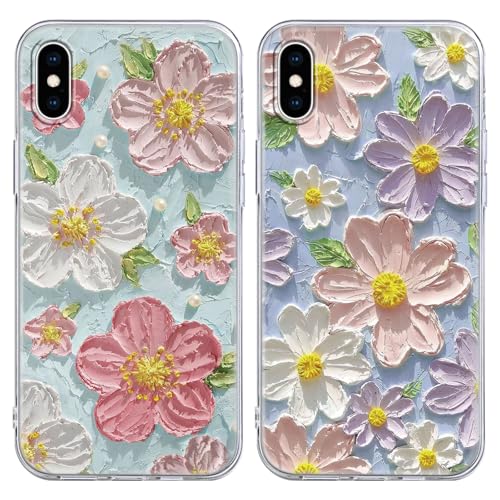 Xylota 2 Pièces Coque pour iPhone XS Max 6,5", Transparente Étui avec Aesthetic Motif Fleur, Mince TPU Bumper Silicone Housse Clair Antichoc Protection Filles Femmes Case Cover pour iPhone XS Max, 31