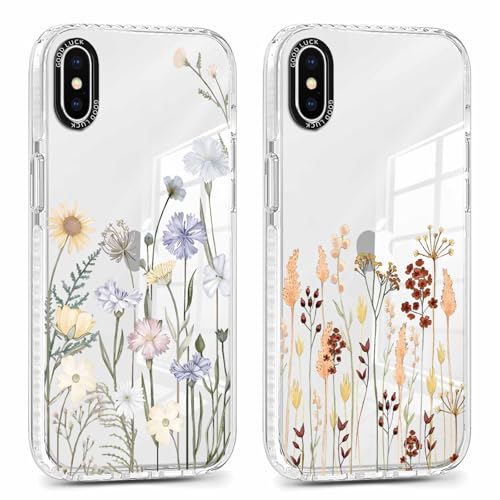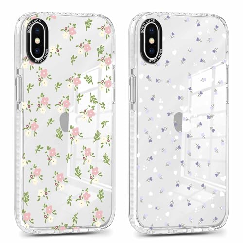 Xylota 2 Pièces Coque pour iPhone XS Max 6,5", Transparente Étui avec Aesthetic Motif Fleur Dessin, Mince TPU Souple Silicone Housse Antichoc Protection Case Filles Femmes Cover pour iPhone XS Max, 01