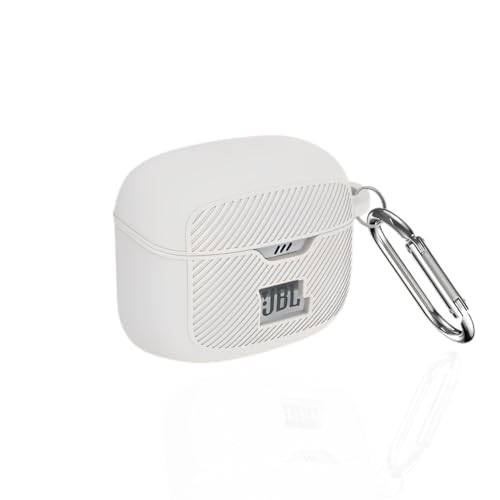 Casevita Coque en silicone compatible avec les écouteurs JBL Tune Buds, résistant aux chocs, étanche, portable, avec mousqueton sur le devant, coque LED visible pour Tune Buds