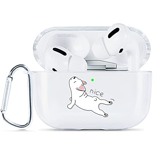 AKABEILA Coque AirPods Pro Case, Compatible avec AirPod Pro Coques Transparente Housse Protection Etui Coque AirPods Pro Case Coque (LED Avant Visible) Mousqueton Antichoc Etui Motifs Mignons, Chien