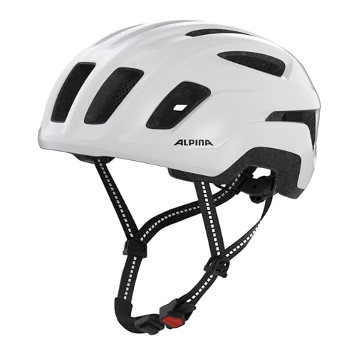 ALPINA PARANUS Urban – Casque de vélo avec feu arrière LED, Coque intérieure légère en Hi-EPS, Grande Ventilation, réglage Individuel et Filet Anti-Insectes intégré - White Gloss - 55-59